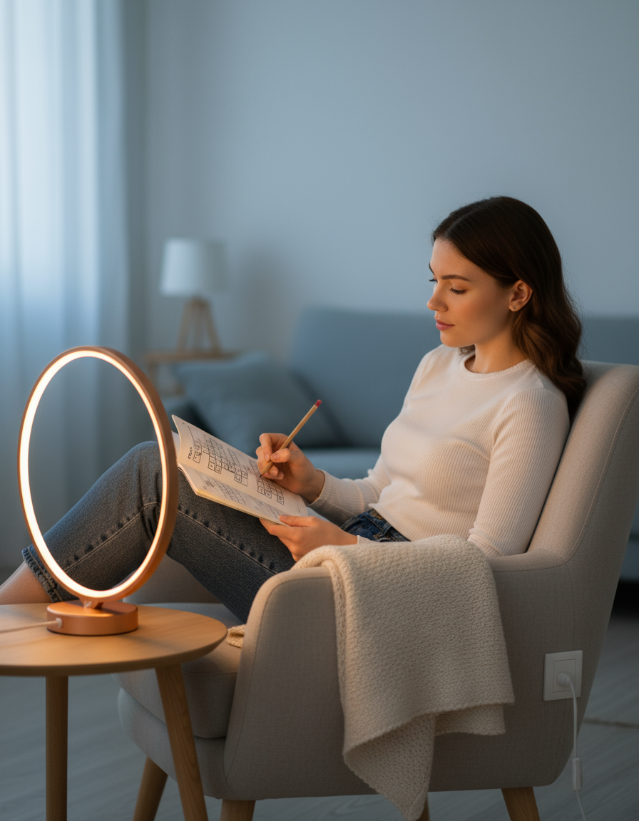 Dose puissante et maîtrisée : 4 paliers d'intensité ajustable selon la distance (lecture, bureau, petit-déj).